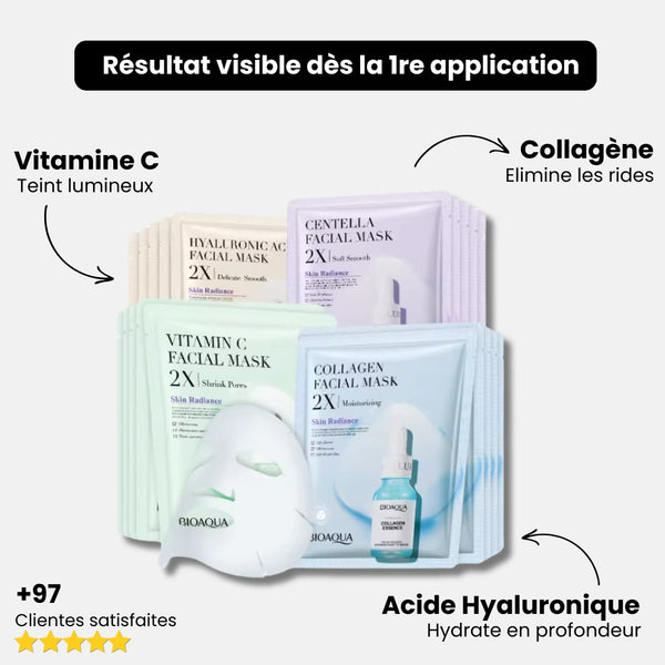 Chaque masque agit comme une cure express régénérante : il apaise, repulpe et illumine la peau dès la première application.